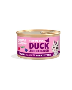 Edgard & Cooper natvoeding voor de kat is verkrijgbaar in verschillende smaken en structuren. De blikjes zijn er in brokjes in saus en de kuipjes een zachte paté.